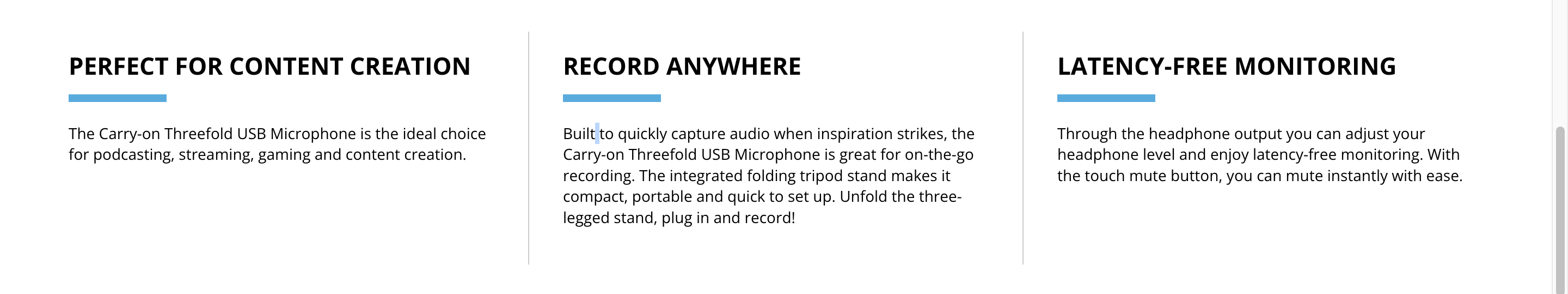 A small and portable threefold USB cardioid microphone perfect for podcasting, streaming, gaming and content creation on the go Simple to set-up with excellent audio quality